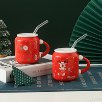 แก้วเซรามิกรูปกวางซานตาคลอสมนุษย์หิมะ400มล. ถ้วยกาแฟพร้อมฝาและช้อนกล่องของขวัญถ้วยนมสำหรับของขวัญคริสต์มาส
