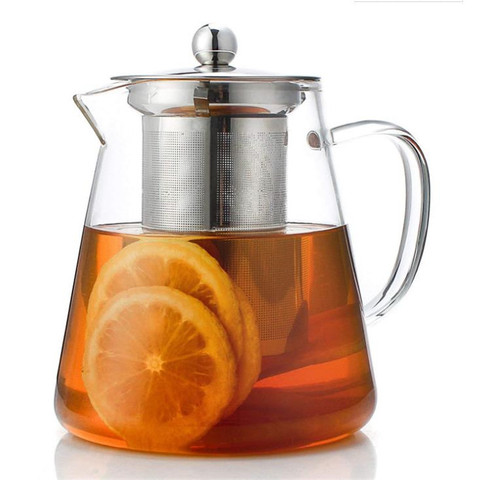 Tetera de vidrio con Infusor de acero inoxidable de grado alimenticio extraíble, tapa para té de hojas sueltas y florecientes