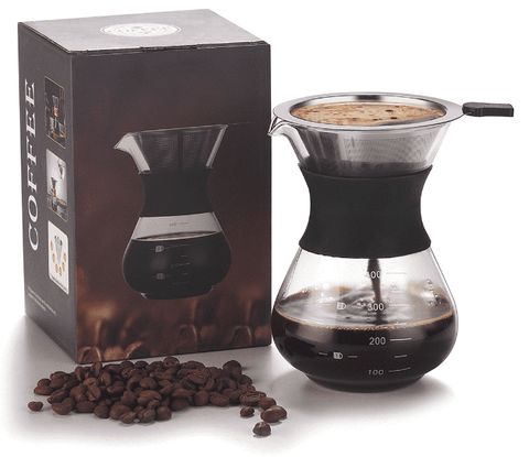 Cafetera de vidrio con filtro de acero inoxidable, cafetera de vidrio con juego de filtros permanentes